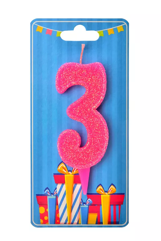 Свічка для торта "Цифра 3" рожева блиск