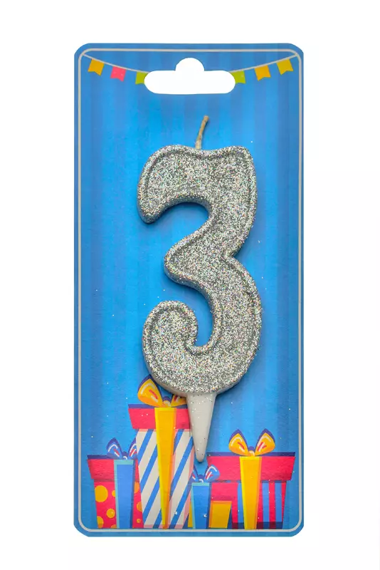 Свічка для торта "Цифра 3" срібло блиск