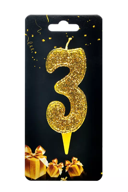 Свічка для торта "Цифра 3" золото магічне