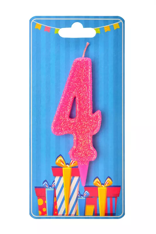 Свічка для торта "Цифра 4" рожева блиск