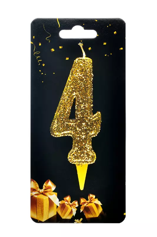 Свічка для торта "Цифра 4" золото магічне