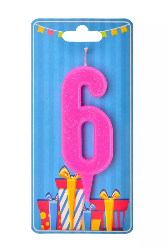 Свічка для торта "Цифра 6" рожева
