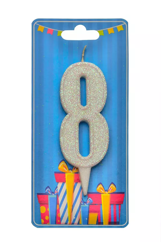 Свічка для торта "Цифра 8" біла блиск