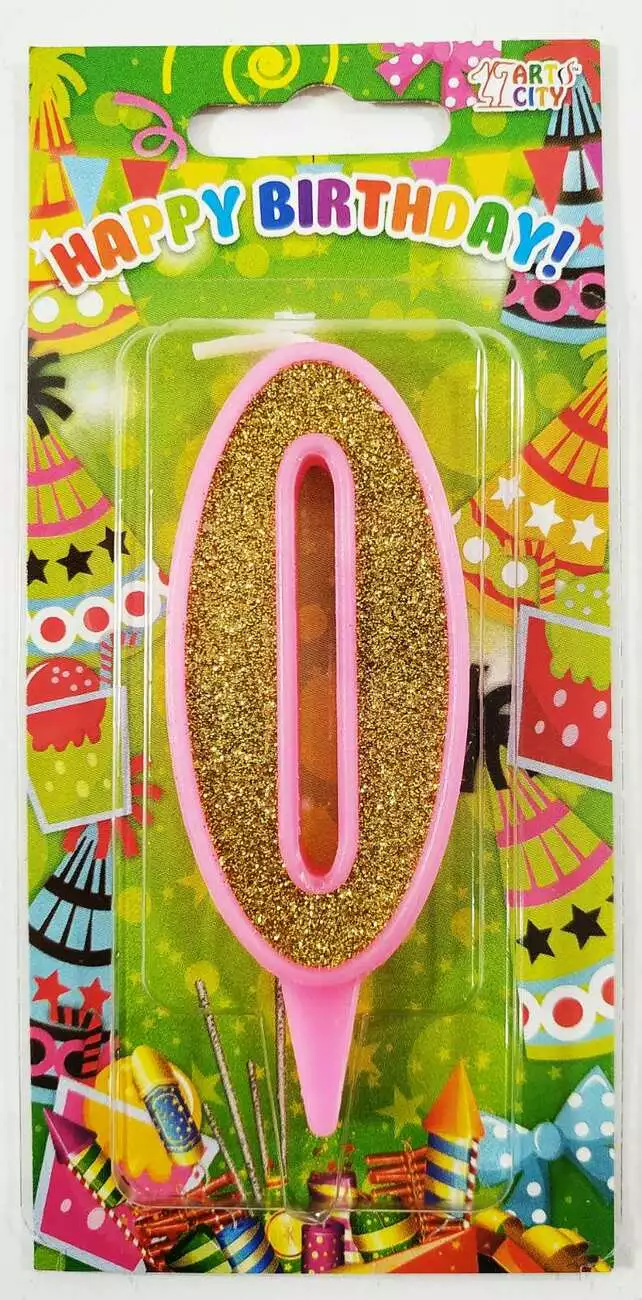 Свічка-цифра, "0" рожево-золота