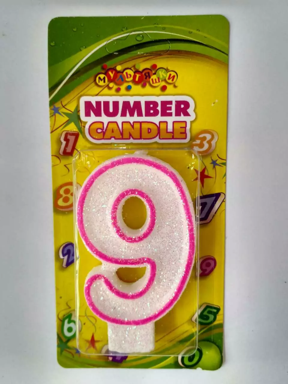 Свічка ЦИФРИ з кольоровим контуром ЦИФРА 9