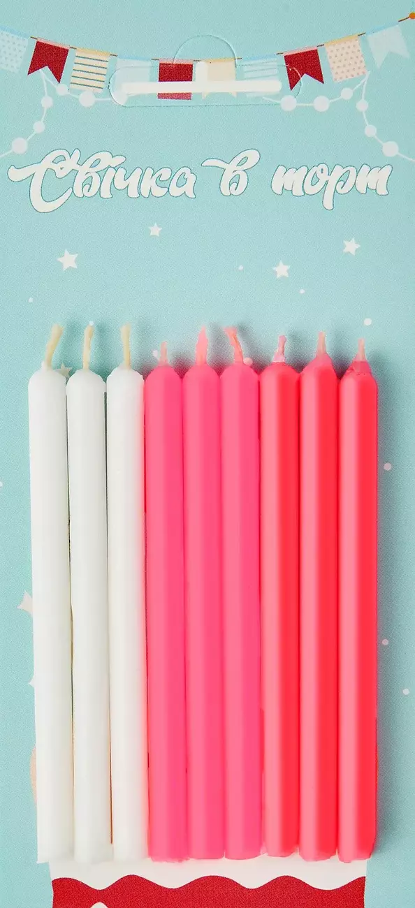 Свічки на торт прямі рожеві (для дівчинки), 9 шт/уп