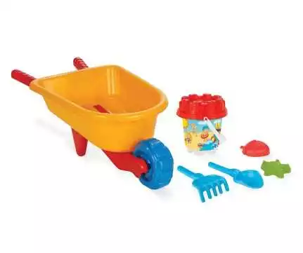 Тачка+пісочний набір 06-127 (12) відро, сито, лопатка, граблі, пасочки, тачка, в сітці