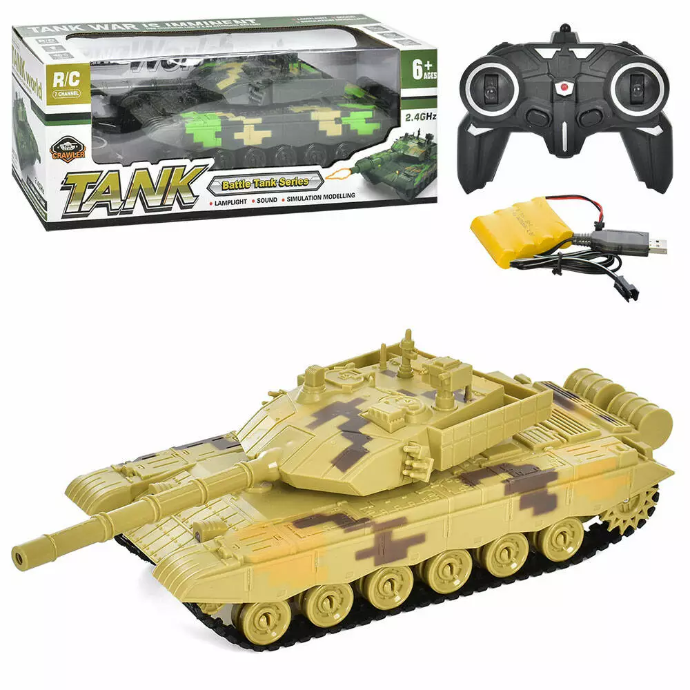Танк 9902 радіокер.2,4G, акум., рухлива вежа, USB, 2 кольори, муз., світло, кор., 38-12,5-13,5см.