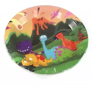 Тарілка картонна, для свята, 18см. Динозаврики
