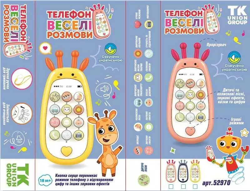 Телефон 52970 (120) ""TK Group"", 3 кольори, УКРАЇНСЬКЕ ОЗВУЧУВАННЯ, підсвічування, казки, пісні, колискові, мелодії, дзвінки, в коробці