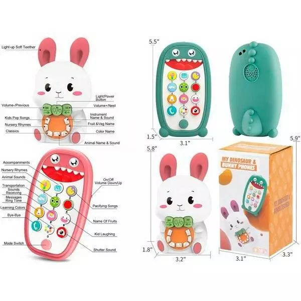 Телефон мобільний 168M-2 звуки тварин, на англійскій, 2 шт., муз., світло, бат., кор., 15,5-8,5-8 см