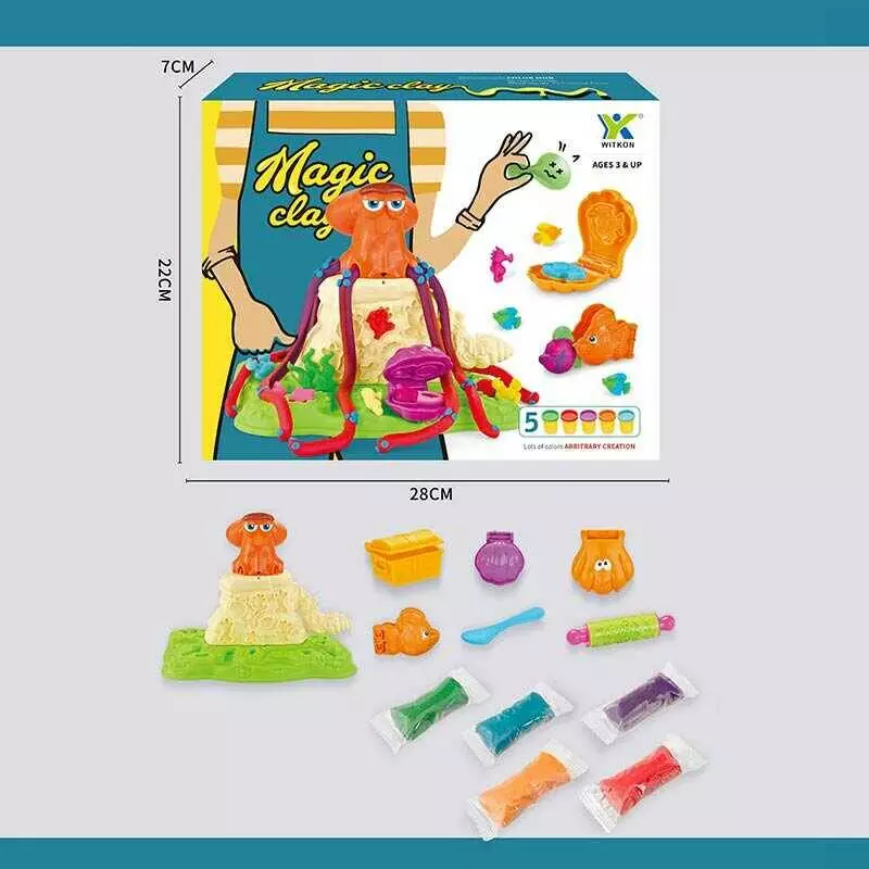 Тісто для ліплення 2934 C (60) 5 кольорів тіста, екструдер кальмар, формочки, аксесуари, в коробці