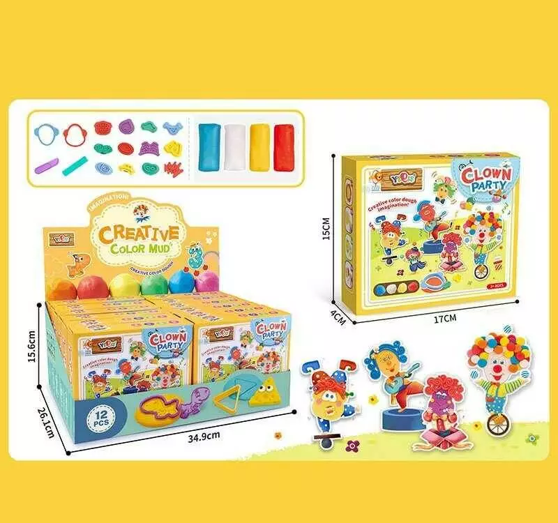 Тісто для ліплення 5828 C (10) ЦІНА ЗА 12 ШТУК В БЛОЦІ, 4 кольори тіста, форми, приладдя