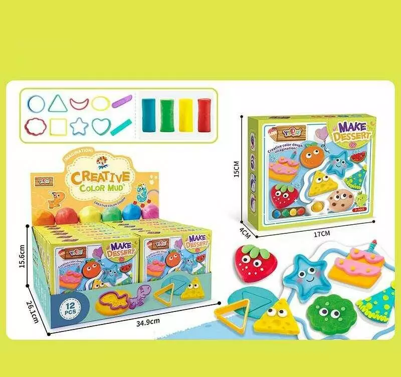 Тісто для ліплення 5830 C (10) ЦІНА ЗА 12 ШТУК В БЛОЦІ, 4 кольори тіста, форми, приладдя