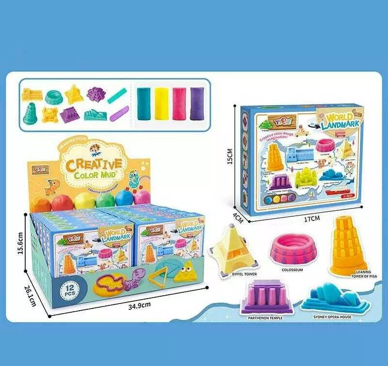 Тісто для ліплення 5831 C (10) ЦІНА ЗА 12 ШТУК В БЛОЦІ, 4 кольори тіста, форми, приладдя