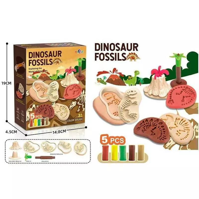 Тісто для ліплення 5833 C (96/2) ""Динозаври"", 5 кольорів тіста, молди, в коробці