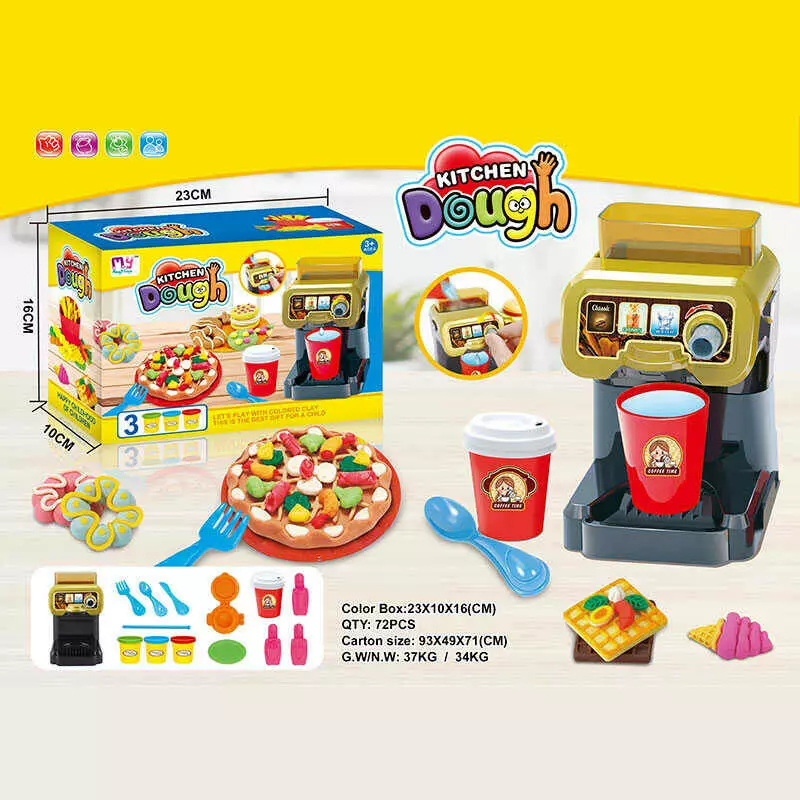 Тісто для ліплення 666-85 (72/2) 3 кольори тіста, кавомашина, формочки, посуд, в коробці