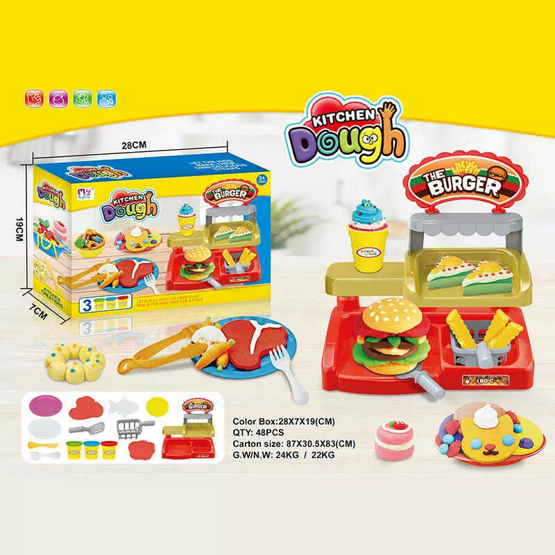Тісто для ліплення 666-86 (48/2) 3 кольори тіста, формочки, тарілочки, прилавок, в коробці