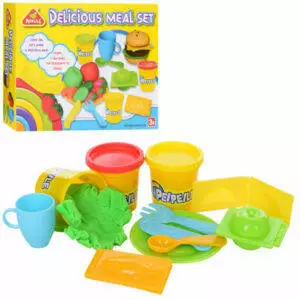 Тісто для ліплення 6810А продукти, 3 кольори (баноч. з криш.), аром., формочки,посуд,кор.,30-22-7см.