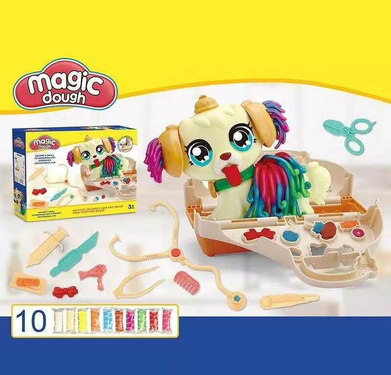 Тісто для ліплення 8636 (36/2) екструдер-песик, медичне приладдя, переноска, 9 кольорів тіста, в коробці