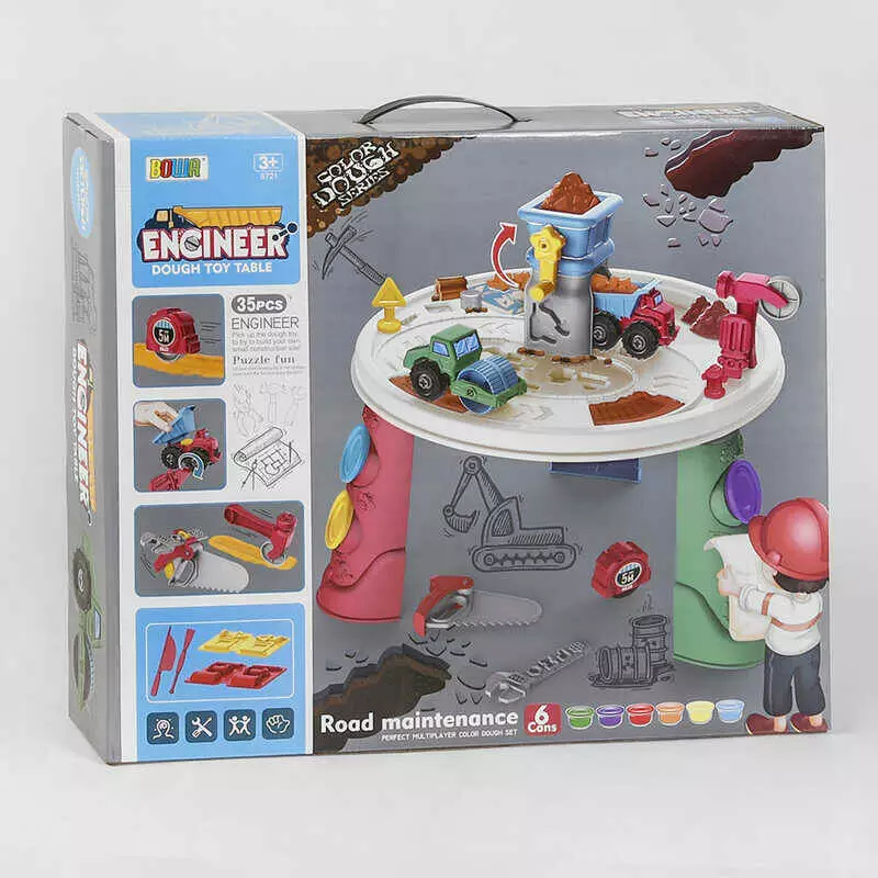 Тісто для ліплення 8721 (10) ""Будівельний майданчик"", 35 деталей, 6 баночок з тестом, 2 машинки, 7 інструментів, аксесуари, в коробці