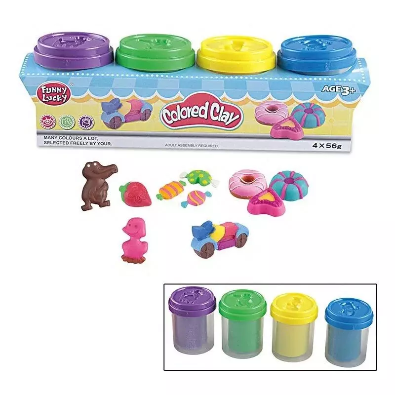 Тісто для ліплення F 018-136 (96/2) "Colored Clay", кришечки з відтисками, 4 кольори, в плівці