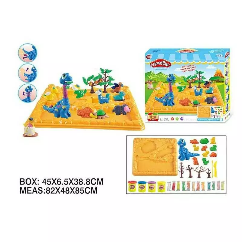 Тісто для ліплення F 018-204 (24/2) ""Динозаври"", 4 кольори тіста, форми, молди, динозавр з екструдером, інструменти, в коробці