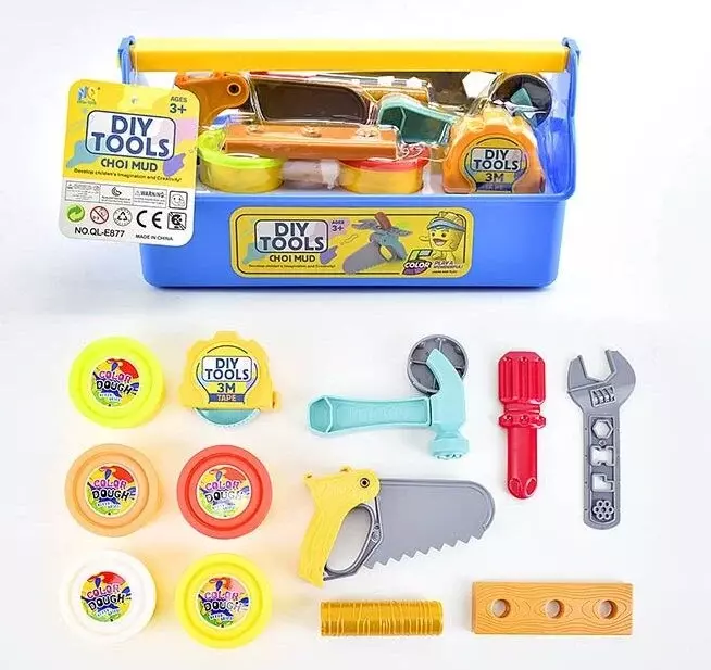 Ну що, юний майстре, час проявити свої таланти та здивувати світ своїми навичками! “DIY Tools” складається з аксесуарів для ремонту чи будівництва та 5-ти баночок з приємною кольоровою субстанцією, яка має еластичні властивості та не пристає до рук. Дитині потрібно тільки увімкнути свою фантазію, почати ліпити та насолоджуватися процесом! Особливості: - набір складається з 5-ти баночок; - різноманітні аксесуари та приладдя для ремонту; - фактурні поверхні кожного з будівельних приладь; - яскраві кольори маси для ліплення; - м’яка приємна текстура; - не прилипає до рук; - зручний ящик для зберігання елементів набору; - допоможе у розвитку фантазії, креативного мислення, дрібної моторики рук та сенсорно-зорвого сприйняття.