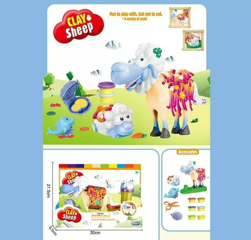 Тісто для ліплення SM 8076 (48/2) вівця з екструдером, молди, 4 кольори тіста, у коробці
