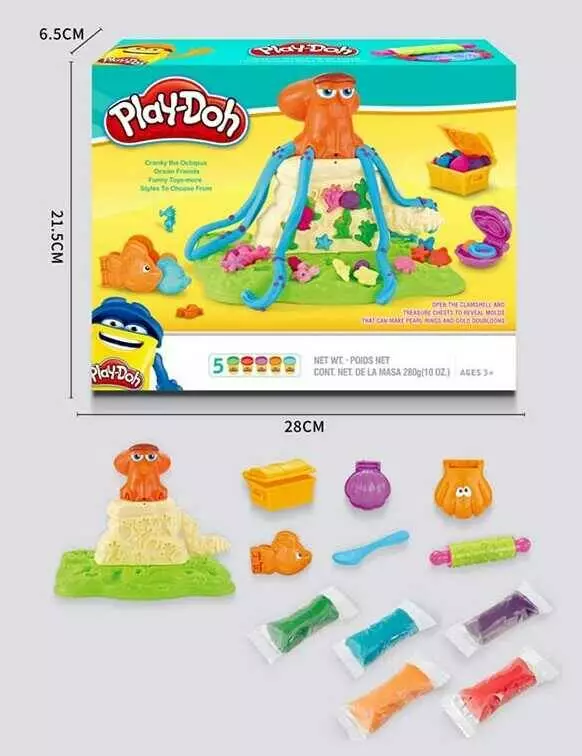 Тісто для ліплення XS 0880-2 (48) восьминіг, 5 кольорів тіста, форми, качалка, в коробці