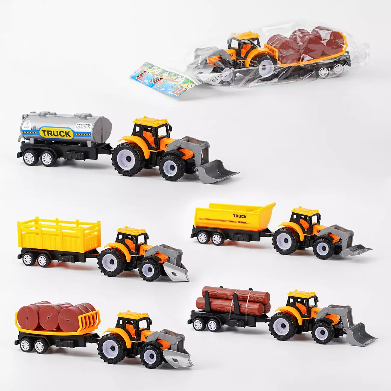 Трактор - незамінний сучасний помічник у сільському господарстві та землеробстві. Потужна машина на великих колесах з легкістю впорається з будь-якими поставленими перед нею завданнями: зорати землю, полити, зібрати та перевезти врожай. Чудова іграшкова модель допоможе дитині познайомитися ближче з одним із видів спецтехніки, від якого перехоплює подих щоразу, коли могутній велетень на колесах проїжджає повз неї. Особливості: - трактор оснащений інерційним механізмом; - виконаний у поєднанні помаранчевого та чорного кольорів; - причеп від’єднується; - обладнаний рухомими елементами; - іграшка виготовлена з якісного та безпечного для здоров’я дитини пластику; - відмінно опрацьовані деталі.
