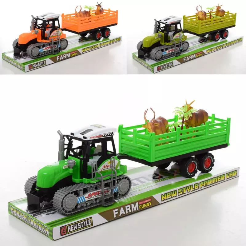 Трактор 688-6 з причепом, інерц., тварини, 3 кольори, бліст., 47-16-13,5 см.