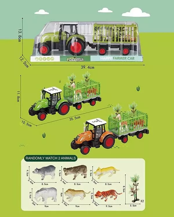 Цей іграшковий трактор - справжня знахідка для маленьких фермерів, яка перенесе їх у світ уяви та цікавих ігрових сюжетів. Виготовлений з високоякісного пластику, він має яскраві кольори, деталізований дизайн і дуже реалістичний вигляд. Трактор оснащений всім необхідним для роботи на фермі: великими колесами з грубим протектором, які забезпечують гарну прохідність навіть по нерівному ґрунту. Позаду трактора розміщений великий причіп зі спеціалізованим обладнанням, який дозволить дитині познайомитися з усіма особливостями конкретного виду спецтехніки. Особливості: - трактор оснащений інерційним механізмом; - гарно опрацьовані деталі додають іграшці реалістичного вигляду; - усередині кабіни є місце для кермування, зручне сидіння для водія і деталі, які створюють ілюзію реального трактора.; - оснащений знімним причепом; - рухомі елементи; - 2 фігурки тварин у комплекті; - іграшка виготовлена з якісного пластику, здатного витримувати активні ігри.