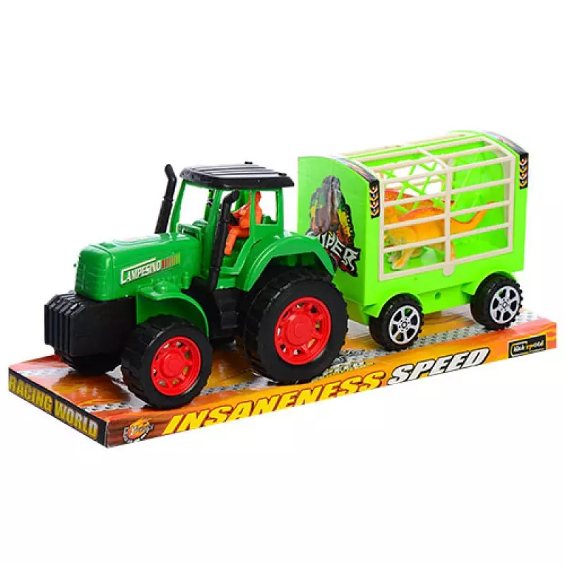 Трактор 906-103 інерц., з причепом, динозаври 2 шт., бліст., 31-11-12 см.
