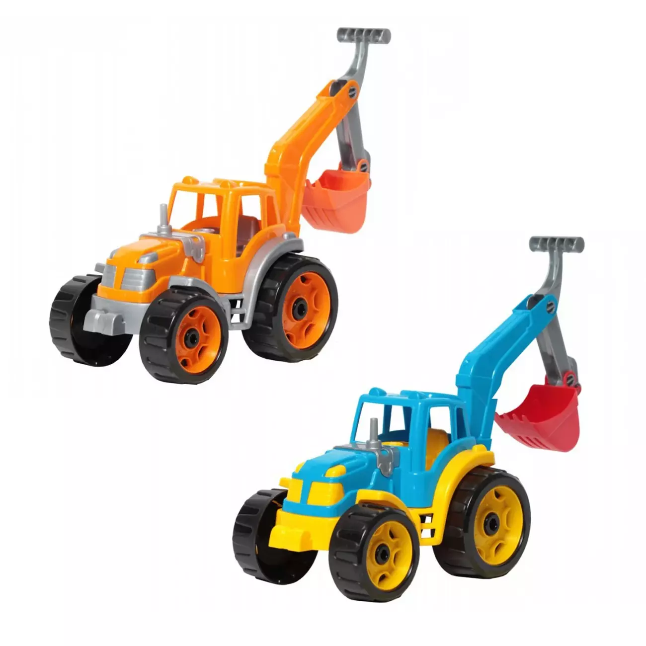 Якісний трактор для гри в будинку і в піску. Трактор з ковшем має просту, надійну конструкцію, обладнаний рухомим ковшом і великими колесами. Трактор зроблений з якісної пластмаси, дуже яскравий і барвистий. Ідеальна іграшка для хлопчика або дівчинки, які люблять грати з машинками. Габаритні розміри: 40 ? 30 ? 17 см