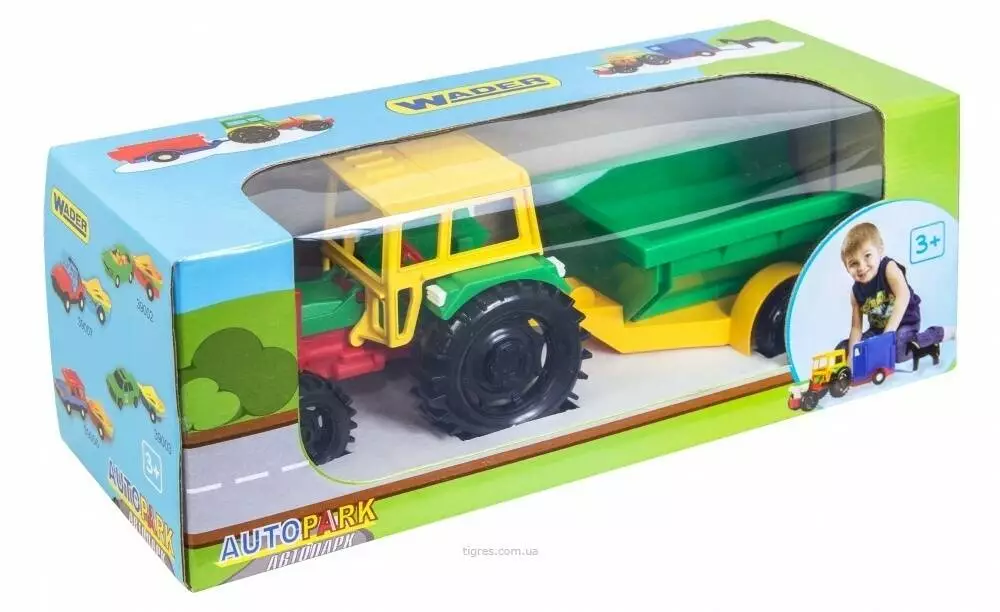 Яскрава жовта кабіна і червоний причіп, а в ньому - конячка, яку можна катати! Це чудо-трактор від польського виробника Wader, відмінно знає, якими іграшками можна захопити і привести в захват дитини. Такий ефектний і функціональний трактор з причепом в коробці малюкові не просто сподобається, а стане улюбленою розвагою. Ще б пак, адже при повороті керма передні колеса на тракторі повертаються. Кабіна теж рухлива і відкривається, а причіп можна від'єднувати. При цьому всі елементи комплекту виготовлені надійно і міцно з якісного, безпечного пластика, пофарбованого в стійкі кольору. Тому катати конячку, влаштовувати їй прогулянки малюк зможе, не тільки граючи вдома, але і взявши іграшку з собою на вулицю. Вона прекрасно витримає і навантаження, і «не зовсім сприятливі» умови їзди - адже такий чудовий трактор з причепом в ході захоплюючої гри може «занести» і на важкопрохідні дороги. Вік: c 3 років Розміри: 38х12х38,5 см Матеріал: пластик