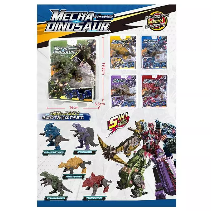Трансформер 728-1A динозаври, 5 видів, лист, 20-16-6 см.