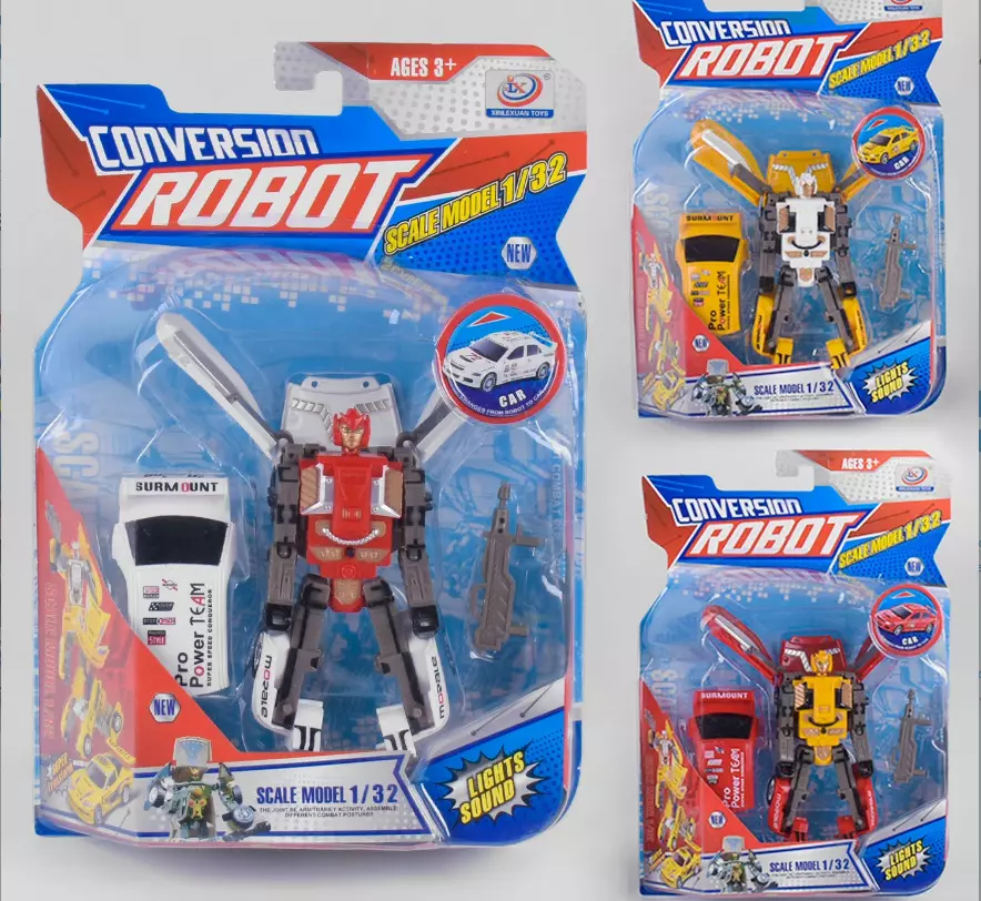 Робот трансформер - це найцікавіша іграшка для хлопчика, за кілька простих рухів бойовий робот готовий трансформуватися в модель гоночного автомобіля. Крутий трансформер працює від 3-х батарейок типу AG13, які забезпечують червоне світло на грудях, галактичні звуки і імітацію стрільби. Робот-трансформер виконаний з якісних деталей, які дадуть дитині наочно розглянути складові, тим самим розвиваючи кругозір, логіку і дрібну моторику. Моделі представлені в 3-х видах.