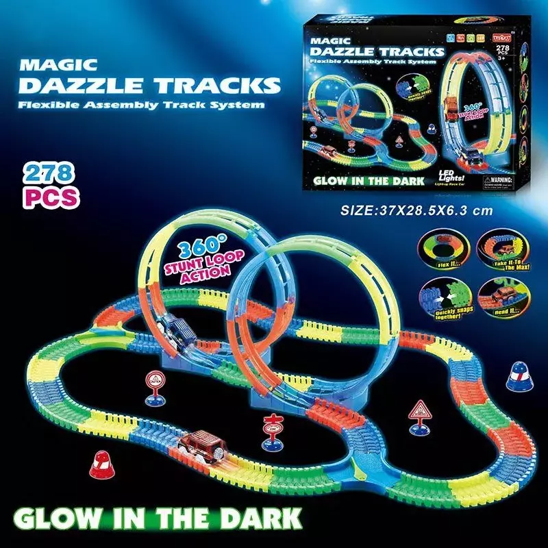 Трек 127 (36/2) 278 деталей, машинка на батарейках, підсвічування, неоновий трек, в коробці