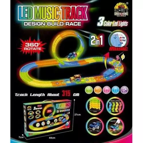 Трек GD-152A світиться в темряві,315см.,оберт.360, машинка,118дет.,муз.,світло,бат.,кор.44-27,5-7см.