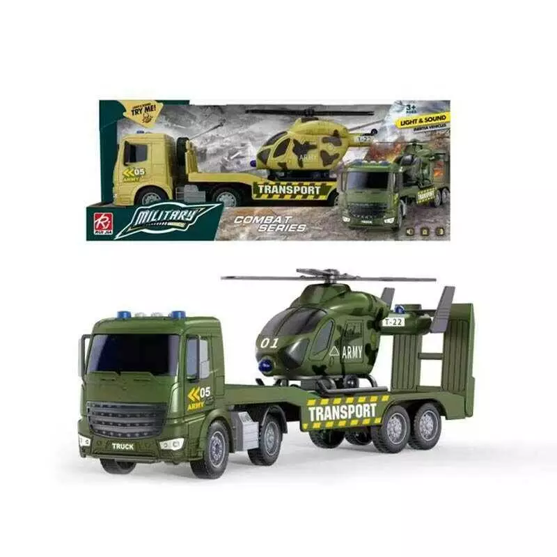 Трейлер RJ 3398 (24/2) 2 кольори, військовий, гелікоптер, звук, підсвічування, інерція, на батарейках, в коробці