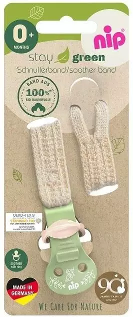 <ul><li><em>Стрічка зі 100% органічної бавовни*</em></li><li><em>Перо легке і м'яке</em></li><li><em>Ремінець для пустушки відповідає STANDARD 100 OEKO-TEX</em></li><li><em>Ремінь 100% пов'язаний і пошитий в Німеччині</em></li><li><em>Упаковка виготовлена з понад 90% переробленого паперу</em></li><li><em>Затискач регулюється поступово, його легко відкривати та закривати однією рукою</em></li><li><em>Відповідає кольору соски nip® Cherry Green</em></li><li><em>*Ремінець зі 100% органічної бавовни</em></li><li><em>*необроблена бавовна без добавок</em></li><li><em>*контрольоване вирощування без пестицидів</em></li><li><em>*контрольована оплата праці</em></li><li><em>Сертифікований гурт</em></li><li><em>Наш ремінь для пустушки Stay Green сертифікований OEKO-TEX згідно зі стандартом STANDARD 100</em></li><li><em>без металу</em></li><li><em>Для пустушок з кільцем і без</em></li></ul>
