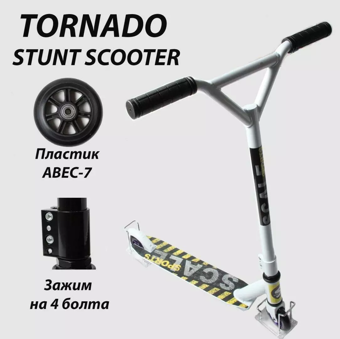 <p>Трюковый самокат <strong>Scale Sports Tornado</strong> – скутер в линейки трюковых самокатов известного американского бренда Scale Sports. Данный самокат сбалансированный, имеет строгий дизайн, а также имеет легкий вес, и выдерживает нагрузку до 80 кг.</p><br /> <p> </p><br /> <p><strong>Особености :</strong></p><br /> <p>-Дека, гарнитура, руль , все отлично подготовлено для самых сложных фристайл трюков в скейт-парке или на улицах;</p><br /> <p>-Руль: материал - алюминиевый сплав, 4х болтовый зажим; высота руля - до 80 см;</p><br /> <p>-Дека: материал - алюминиевый сплав; длина деки - 49 см;</p><br /> <p>-Колеса 100 мм ,Hi-rebound 82A;</p><br /> <p>-Подшипники - АВЕС 7;</p><br /> <p><strong>Характеристики:</strong></p><br /> <p>-Тип товара: самокат трюковый</p><br /> <p>-Уровень мастерства: средний.</p><br /> <p>-Возраст: 7+</p><br /> <p>-Материал деки: алюминий 6061 T6.</p><br /> <p>-Максимальная нагрузка: 80 кг</p><br /> <p>-Жесткость колес: 82А</p><br /> <p>-Диаметр колес: 100 мм</p><br /> <p>-Подшипник: ABEC-7</p><br /> <p>-Рулевой хомут: четырехболтовый</p><br /> <p>-Габариты деки: 49х10 см</p><br /> <p>-Материал руля: алюминий 6061 Т6</p><br /> <p>-Тормоз: ножной задний Flex Fender</p><br /> <p>-Сердечник колес: прочный спец.пластик</p><br /> <p>-Общая высота: до 84 см</p><br /> <p>-Ширина руля: 49 см</p><br /> <p>-Вес: 3,5 кг</p><br /> <p><strong>Комплект поставки:</strong></p><br /> <p>-Самокат в разобраном виде,</p><br /> <p>-инстукция на английском,</p><br /> <p>-ключ для сборки</p><br /> <p>-фирменая заводская коробка!</p><br />