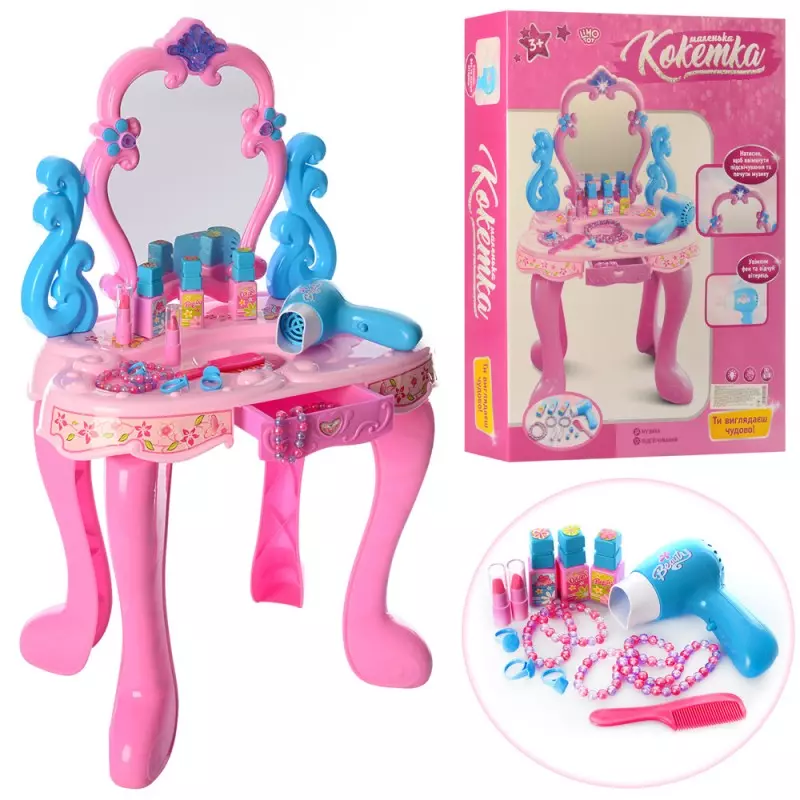 Трюмо 008-86 фен, гребінець, косметика, прикраси, муз., світло, бат., кор., 51-38-9 см.