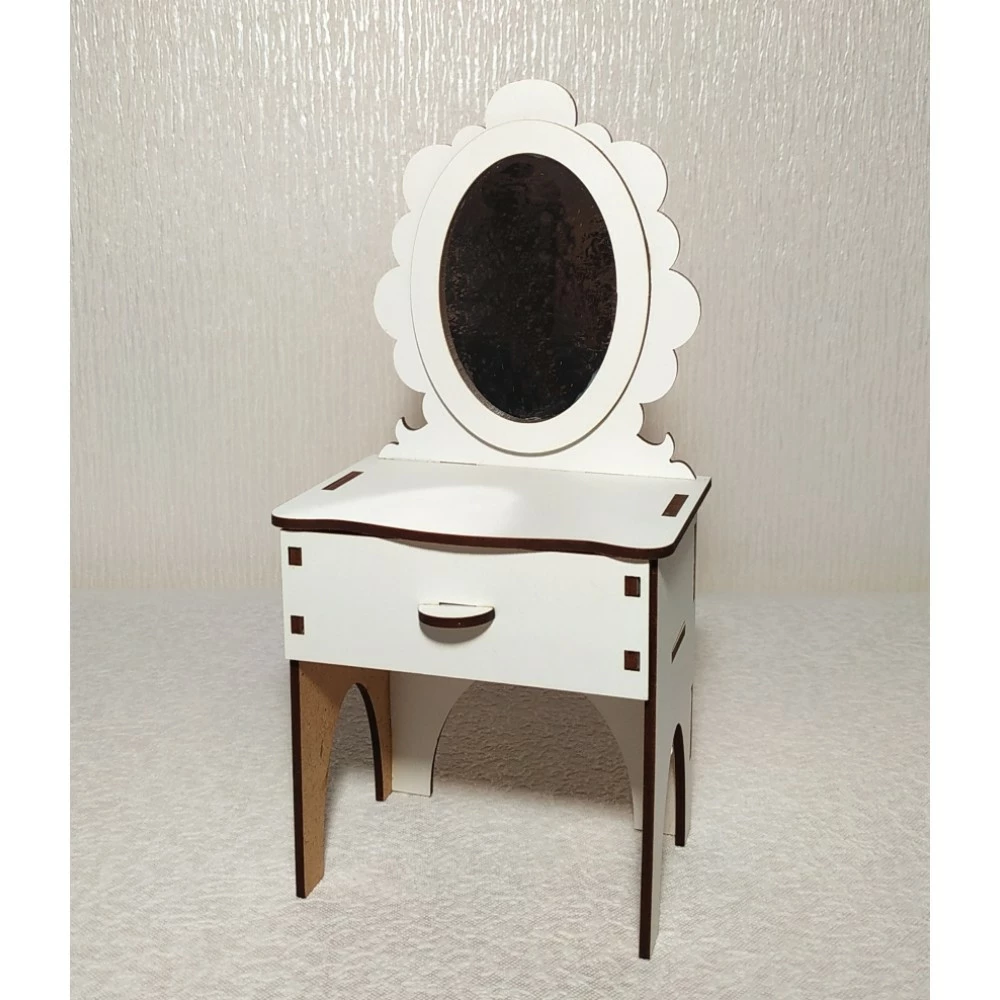 Трюмо 1 для ляльок до 30 см (Барбі, Братц, Монстр Хай). Матеріал: ДВП ламіноване і шліфоване. Розмір: 16 * 10 * 25 см. Вага 165г. Упаковка: пакет/коробка. Для дітей від 3-х років під наглядом дорослих (може містити дрібні предмети). Зберігати при t від 5 до 26 С, відн.вологість 50-80%. Тримати подалі від вогню, води і механічних пошкоджень. Термін придатності необмежений.