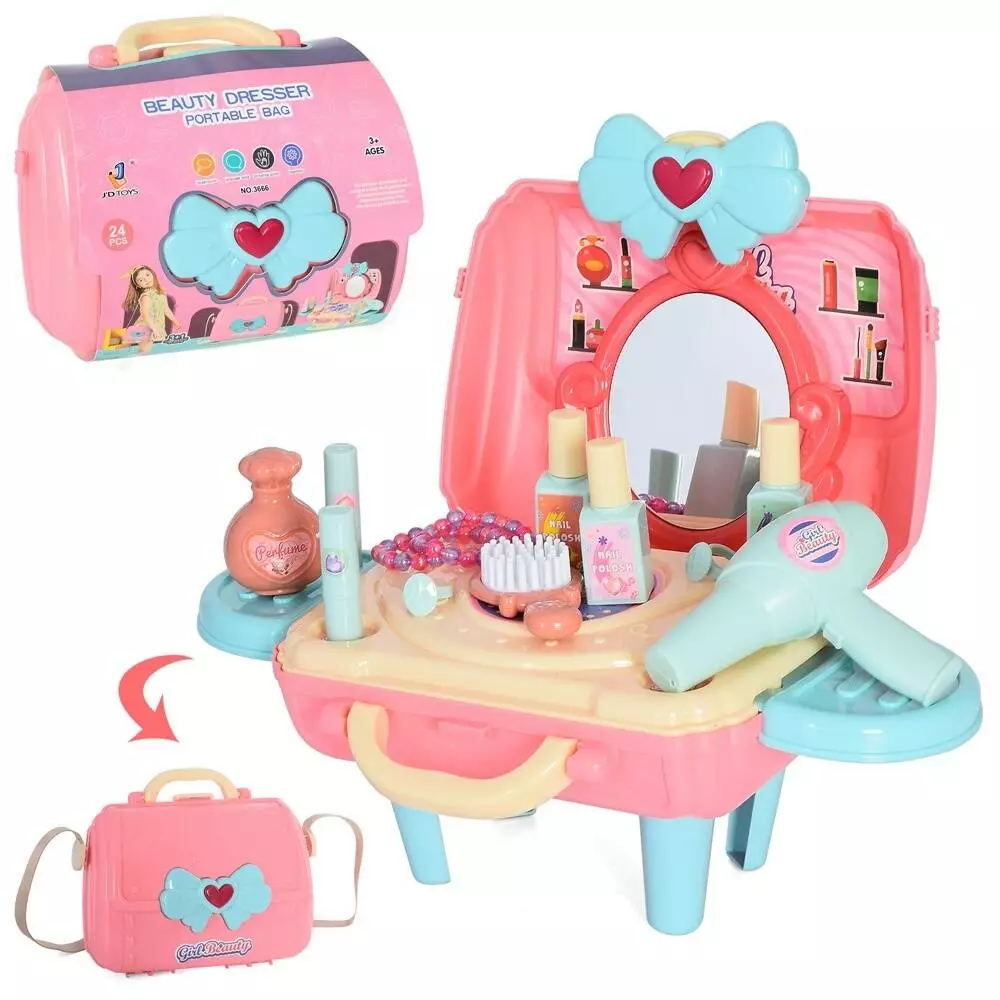 Трюмо 3666 фен, гребінець, флакони, 24предм., склад.в сумочку, карт.оберт., 23-18-10см.