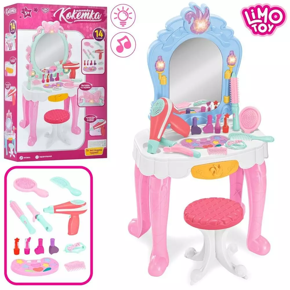 Трюмо 7940 стілець, гребінець, фен, флакони, муз, світло, бат., кор., 37,5-60-12см.