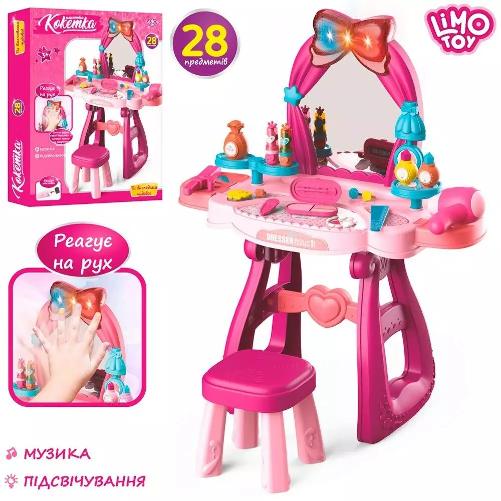 Трюмо 8222C 57-29-в69,5см., стільчик, фен, аксес., 28предм., муз., світло, бат.,кор.,58,5-46-10,5см.