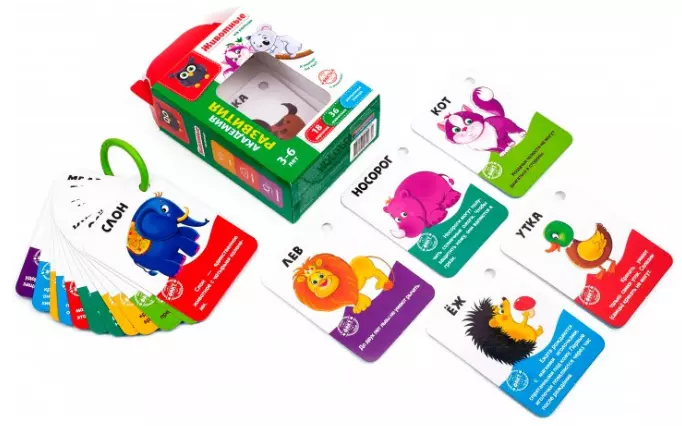 Знайомимося із різними тваринами! На картках зображено тварин. А нижче є цікава інформація про кожну тварину. Нехай дитина уважно розгляне картки. Читайте вголос назви. Нехай дитина за вами повторює. Картки на кільці можна скрізь брати із собою! Дитина зможе грати у дорозі та на прогулянці. Особливості: пластикове роз'ємне кільце, картки із щільного картону (9.9 х 13.8 см) Комплектація: 18 карток