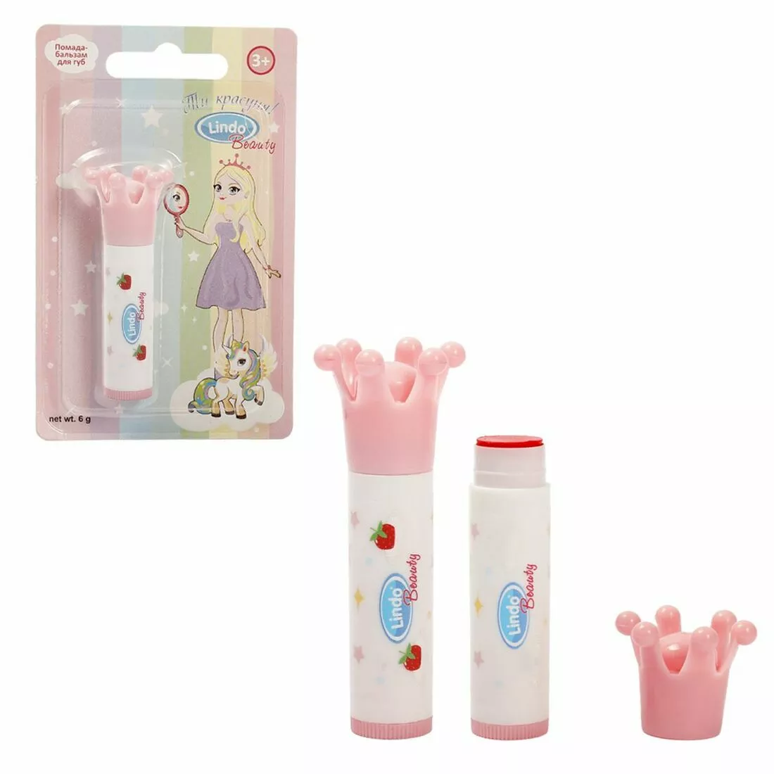 Помада-бальзам надає губкам легкий відтінок і сяйво. Спеціальна формула розроблена з урахуванням особливостей ніжної дитячої шкіри губ, прекрасно живить і захищає їх. Спосіб застосування: рівномірно нанести на губи. Косметика нетоксична і безпечна. Склад кожного компонента вказано на упаковці. Рекомендовано для дітей від 3-х років.
